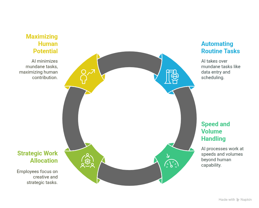 Ultimately, the integration of AI into daily operations creates a powerful synergy between technology and human potential. By minimizing the time spent on low-value activities, businesses can maximize the unique strengths of their workforce, fueling innovation, improving performance, and driving sustained growth.