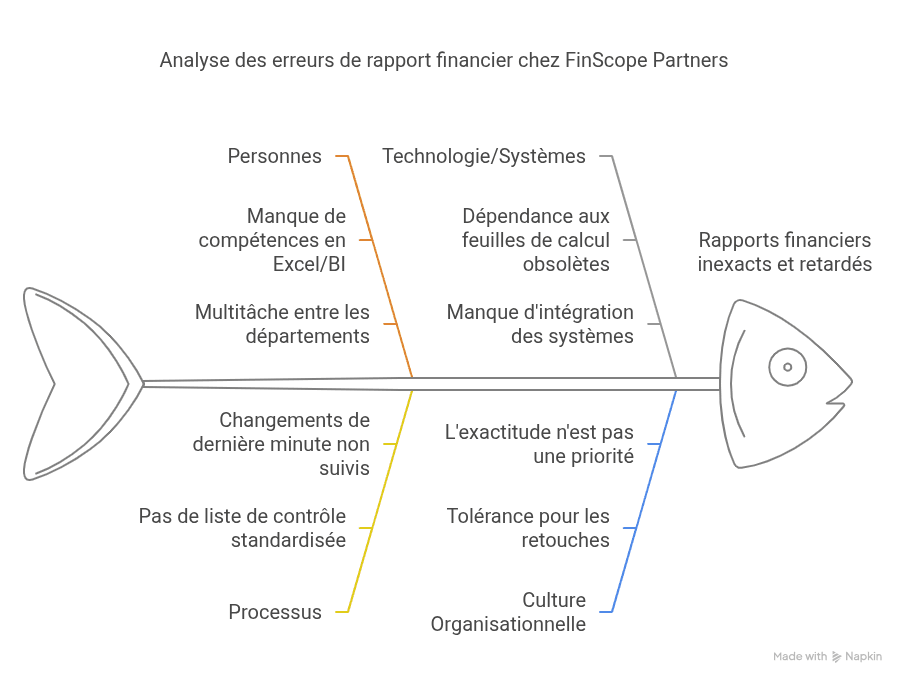 Dans le cabinet de conseil "FinScope Partners", l'équipe financière soumet régulièrement des rapports avec des chiffres incorrects ou des données manquantes, retardant les décisions exécutives.