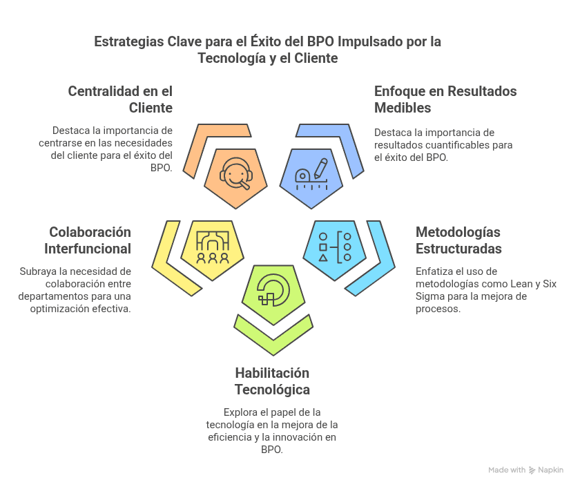 - Resultados Medibles: La BPO exitosa se centra en mejoras cuantificables en tiempo, costo, calidad y seguridad.
