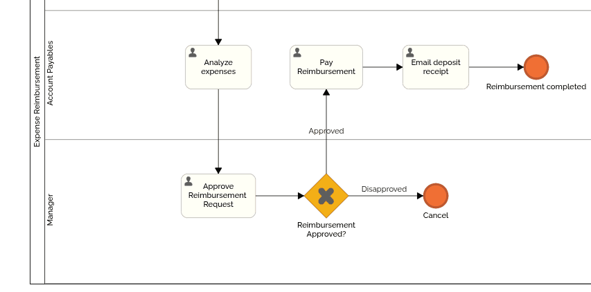 In this example, you can clearly see the responsibilities of the Manager and the Accounts Payable team, making the process easier to understand and follow.