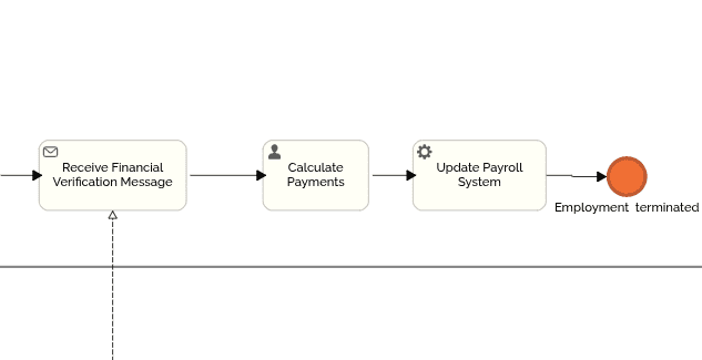 In this example, the process includes updating the payroll system after an employee is terminated — showing how business activities and system actions are connected in a single, clear model.