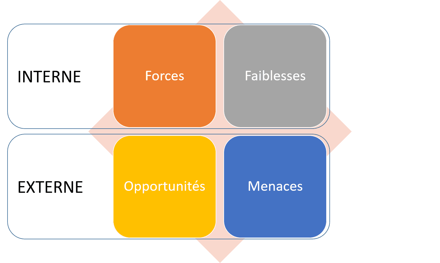 Ainsi, pour faciliter l’analyse SWOT, nous pouvons diviser l’environnement externe en deux ensembles de facteurs :