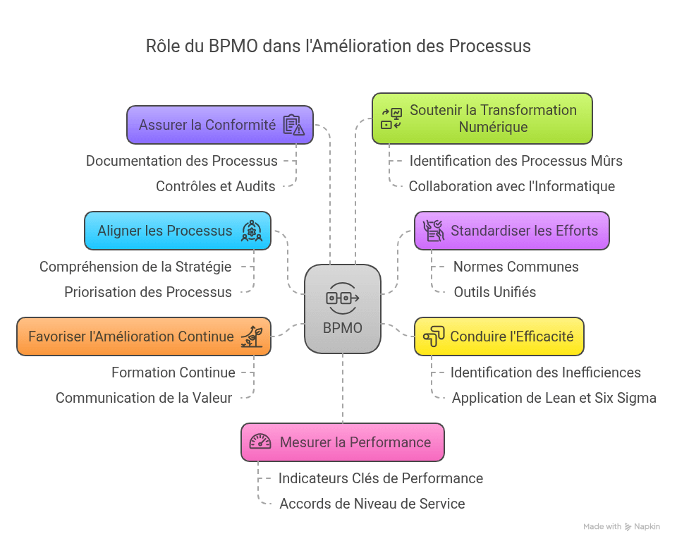 - Promouvoir une Culture de Pensée Processus: Grâce à une communication continue, des histoires de réussite et du plaidoyer, le BPMO travaille à intégrer une "mentalité de processus" dans toute l'organisation.