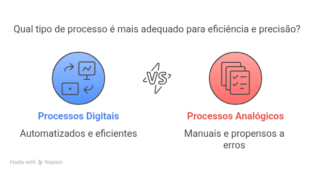Ao contrário dos processos analógicos que dependem fortemente da intervenção humana, os processos digitais são projetados para operar com o mínimo de atrito, permitindo uma execução mais rápida, maior precisão e uma visibilidade mais profunda das operações.